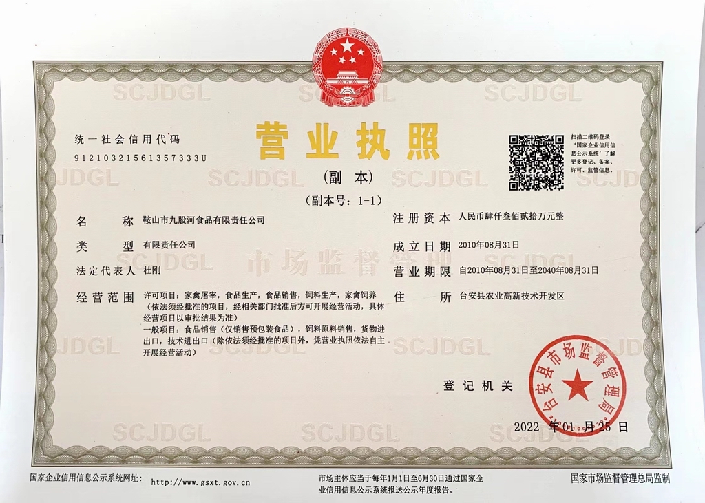 1997年丨九股河誕生于遼寧臺安,成立臺安縣九股河農(nóng)業(yè)發(fā)展有限公司2003年丨九股河走進(jìn)錦州市,在凌海成立凌海九股河食品有限公司2008年丨成立凌海九股河飼料有限公司2010年丨九股河與禾豐合作后,成立鞍山市九股河食品有限責(zé)任公司,從此,禾豐九股河走進(jìn)了高速發(fā)展之路2011年丨繼續(xù)在遼西闊步,成立葫蘆島九股河食品有限公司同年,臺安縣九股河農(nóng)業(yè)發(fā)展有限公司養(yǎng)殖部成立,按下規(guī)?;\養(yǎng)小區(qū)建設(shè)的快進(jìn)鍵2